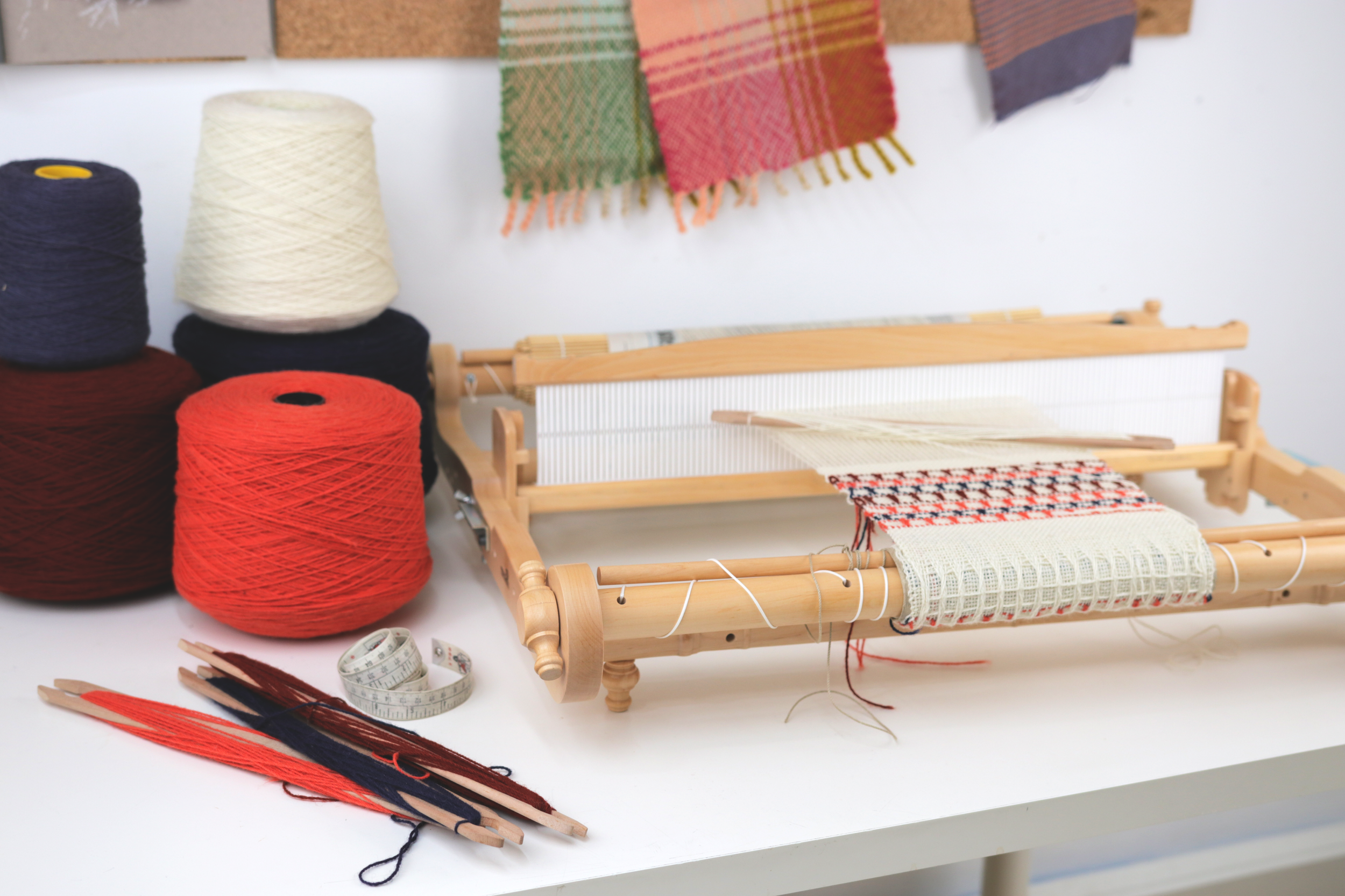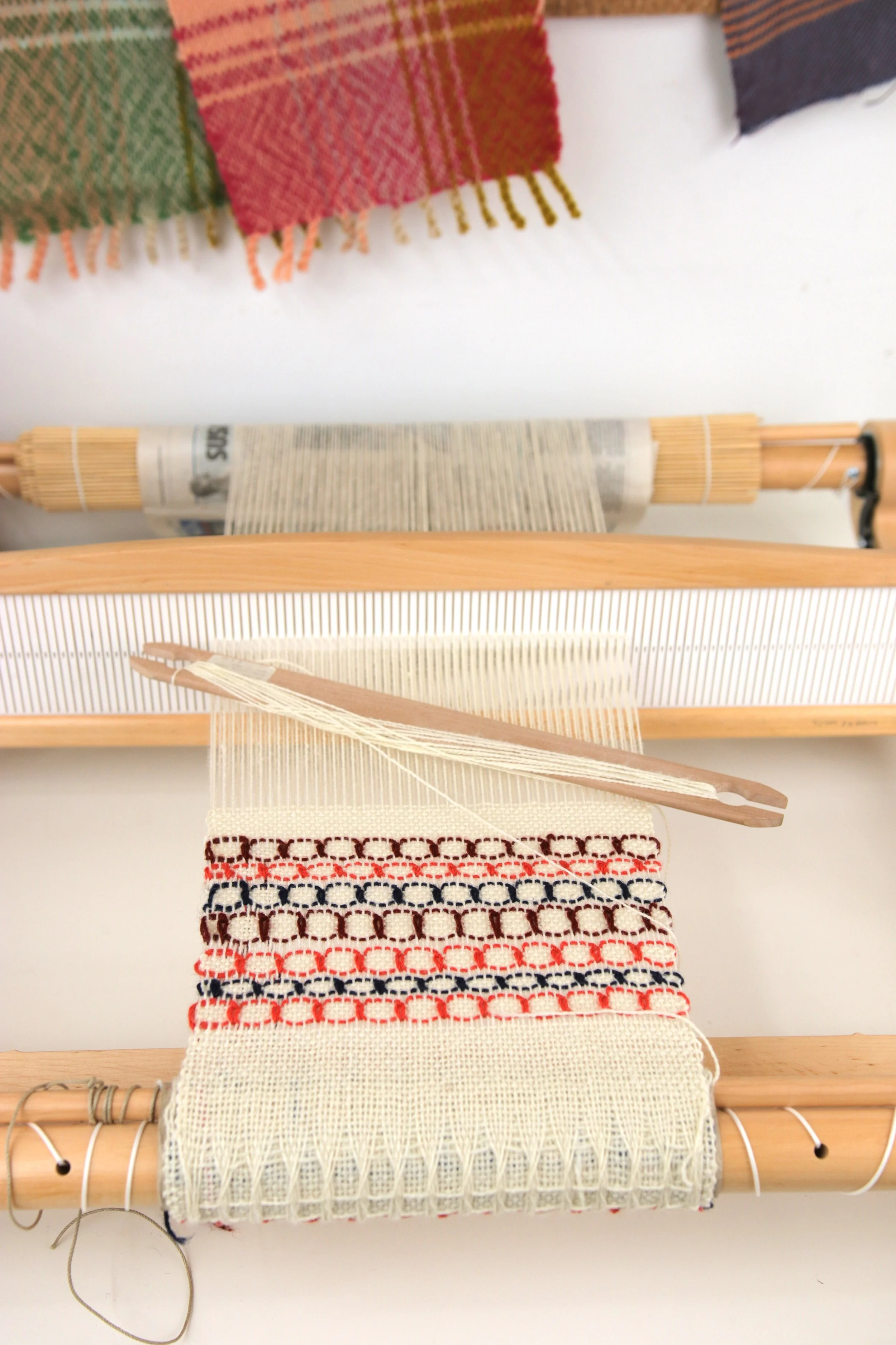 We weave on Kromski harp rigid heddle looms.